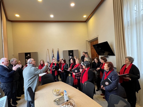 Με πρωτοχρονιάτικες μικρασιάτικες μελωδίες πλημμύρισε η Λότζια από τα κάλαντα που έψαλαν στο Δήμαρχο Ηρακλείου Αλέξη Καλοκαιρινό ο Σύλλογος Αλατσατιανών και ο Πολιτιστικός Σύλλογος Φορτέτσας παρουσία του Αντιδημάρχου Οικονομικών & Ανάπτυξης της Τοπικής Οικονομίας Γιώργου Αγριμανάκη, της Αντιδημάρχου Διοίκησης και Προγραμματισμού Γιάννας Καλονάκη και της Γενικής Γραμματέως του Δήμου Μαρίας Σκραφνάκη.
